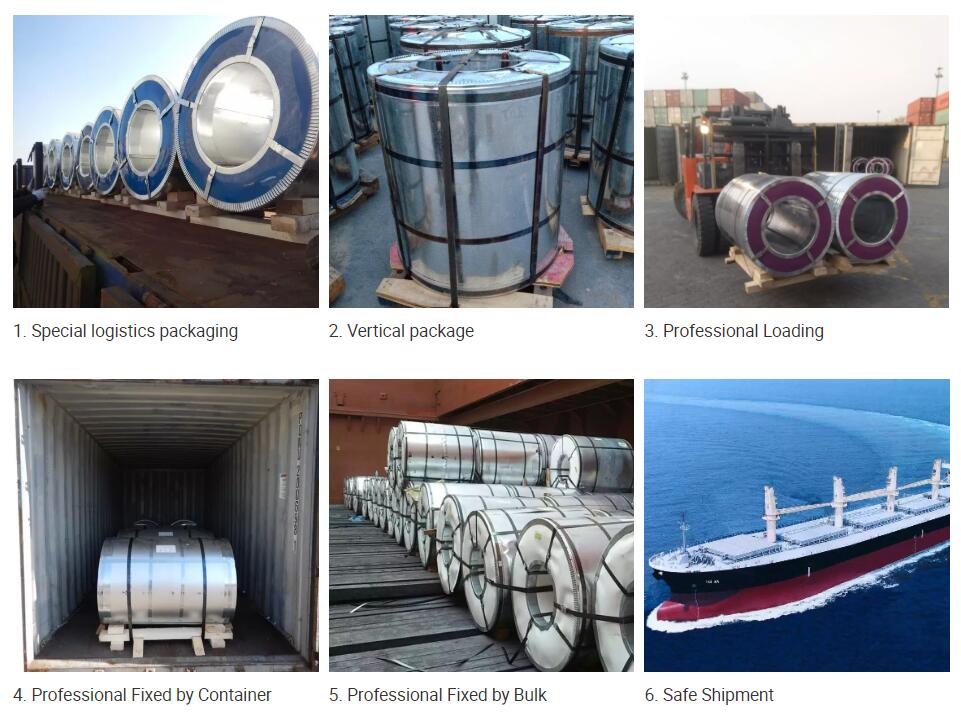 Emballer: | Le papier anti-eau est l'emballage intérieur, La feuille d'acier galvanisée ou en acier revêtue est l'emballage extérieure, la plaque de protection latérale, puis enveloppé par sept courroie d'acier, ou selon l'exigence du client |