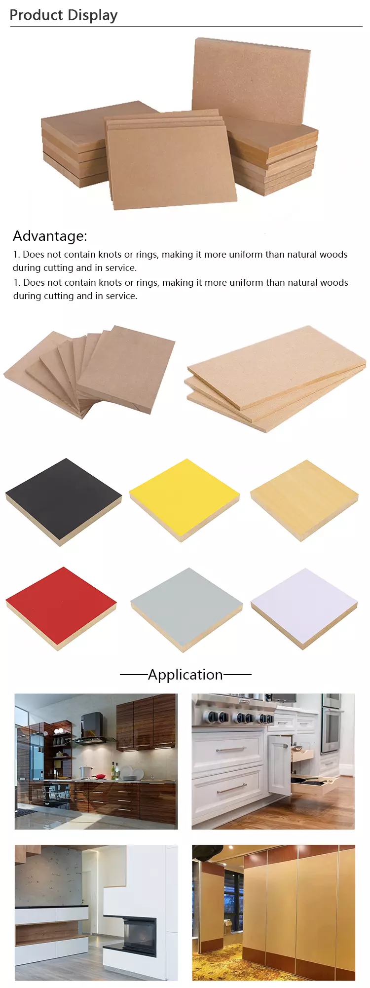2.La densité est de 820 kg / CBM-850kgs / CBM, il est plus élevé que le MDF épais.